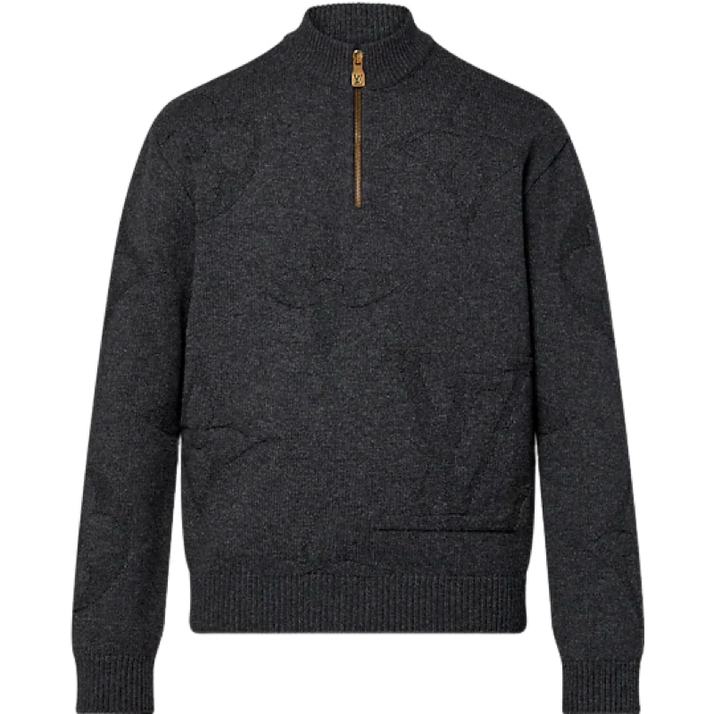 Pull Monogram Jacquard semi-zippé en laine