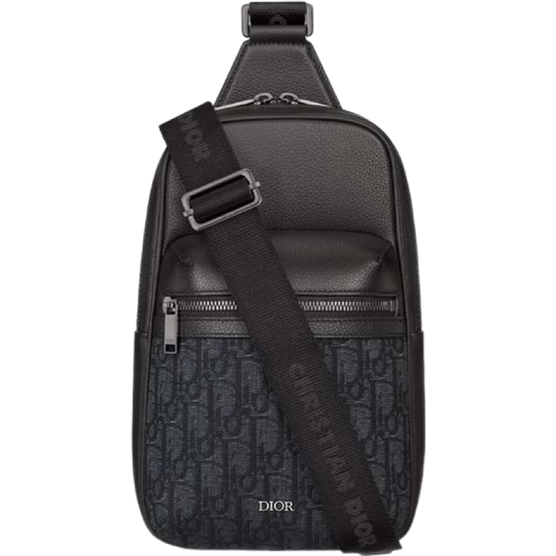 Slingbag Rider 2.0 Toile jacquard CD Oblique beige et noir et cuir de veau grainé noir 10/10