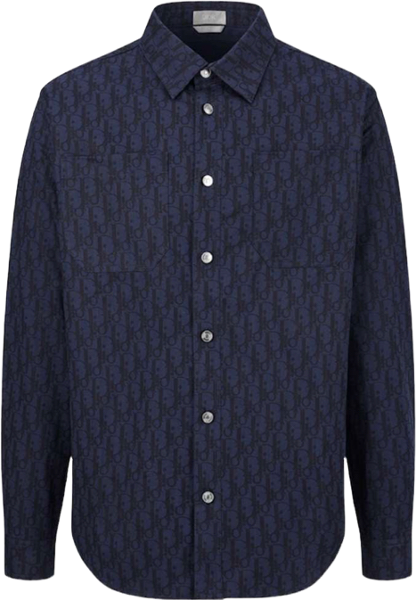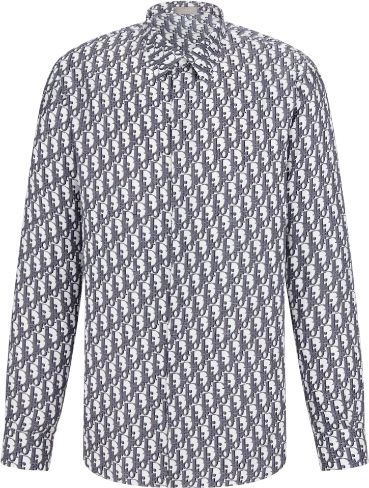 Chemise CD Oblique Sergé de soie blanche et bleue